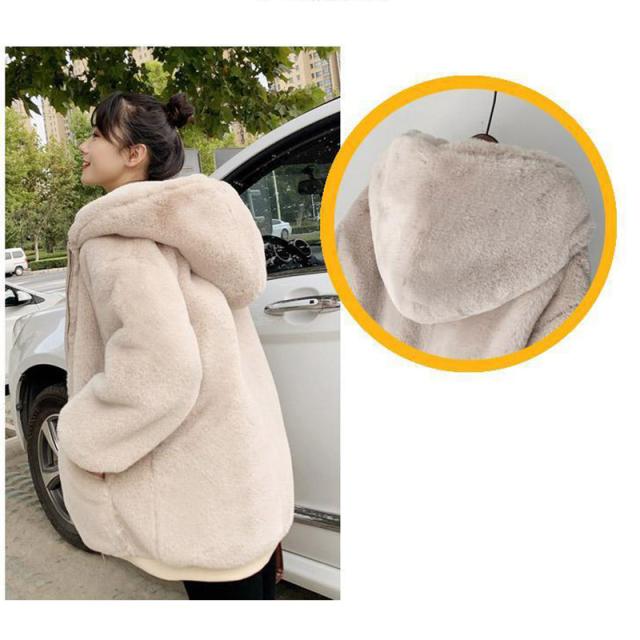 フェイクファーコート ファーコート レデイース 毛皮コート ジャケット ミドル丈 ボアコート 保温 防寒防風 長袖 アウター フード付き 厚手