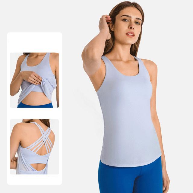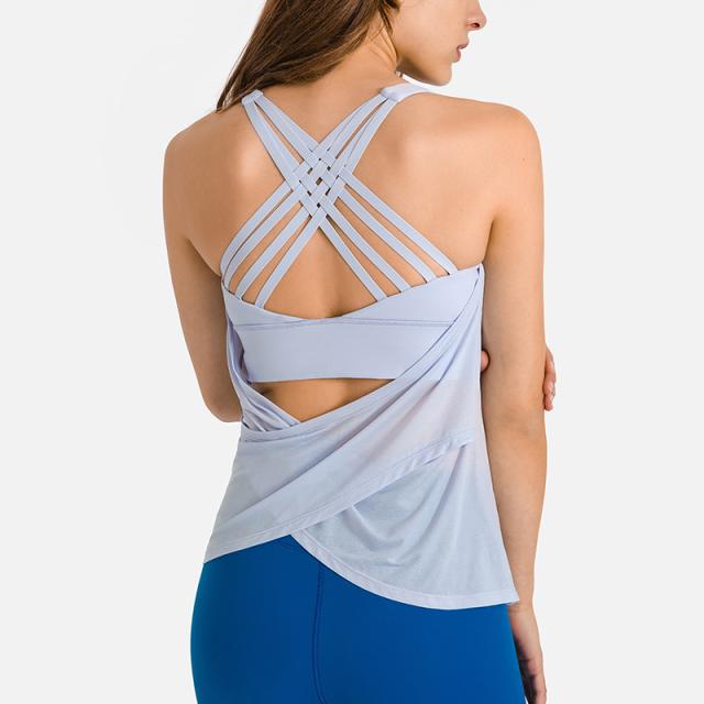 ヨガウェア トップス ブラトップ タンクトップ カップ付 レディース フィットネスウェア ホットヨガ バックデザイン クロス