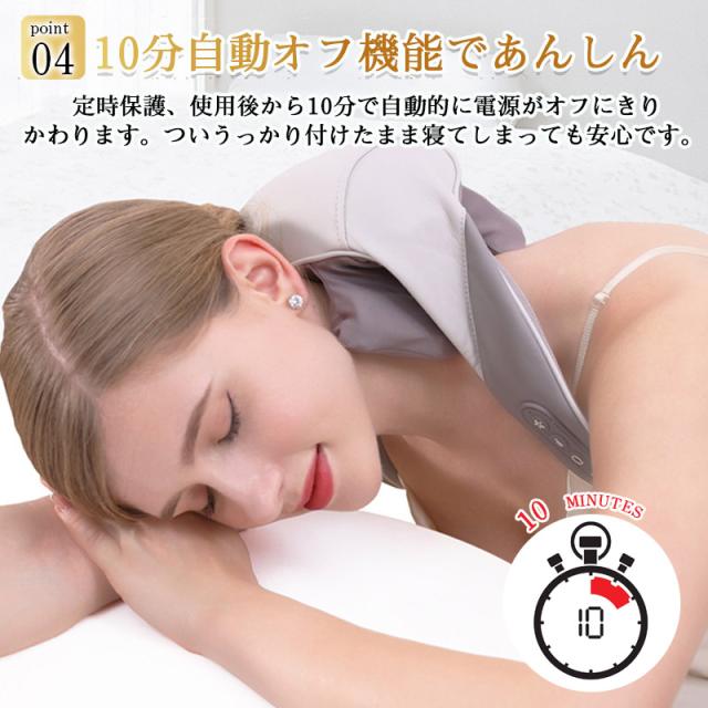 【操作簡単&自動タイマー】ワンボタンで誰でも簡単に使えるマッサージです。小型軽量のサイズで、僅か1290g、持ち運び便利です。タイマー付き、約10分使用後で自動停止し、過熱や使いすぎる心配もありません。いつでも自宅やオフィスなどの場所で体の深部まで届く快適なマッサージを楽しめます。