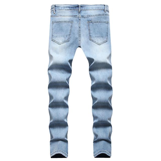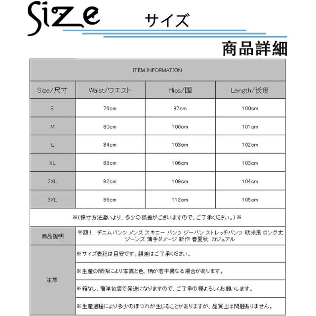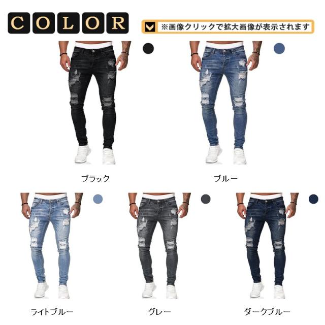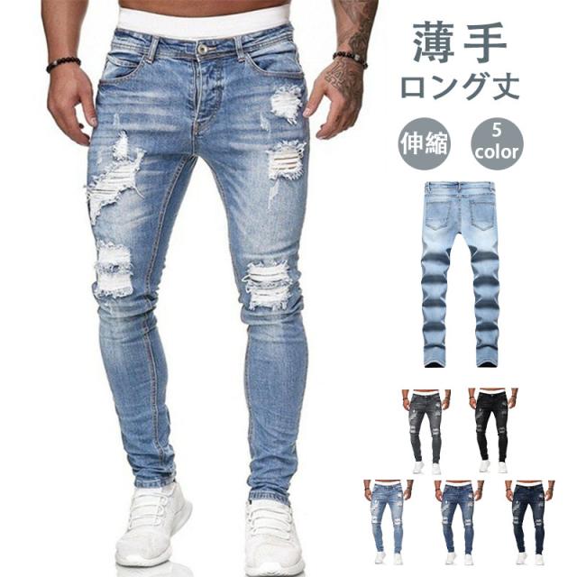 半額! デニムパンツ メンズ スキニー パンツ ジーパン ストレッチパンツ 欧米風 ロング丈 ジーンズ 薄手ダメージ 新作 春夏秋 カジュアル