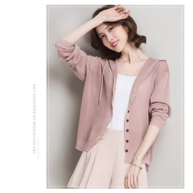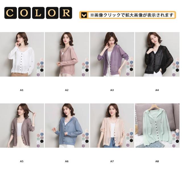 <15日迄2点で100円OFF>カーディガン レディース UVカット フード付き 透かし 接触冷感 日焼け止め ショート丈 無地 春夏服 トップス 長袖 羽織り 冷房対策