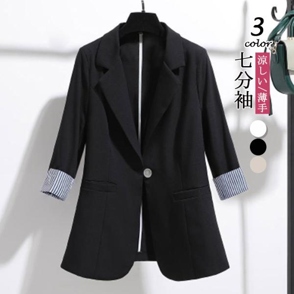 レディース スーツジャケット 夏 七分袖 薄手 トップス オフィス 上品 涼しい 洗える アウターウエア 無地 フォーマル リクルート送料無料