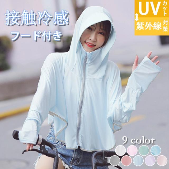 uv パーカー 指穴 uvカット ひんやり 接触冷感 ラッシュガード ショート丈 フード付き カーディガン 日焼け止め 軽量 長袖 薄手 吸水速乾