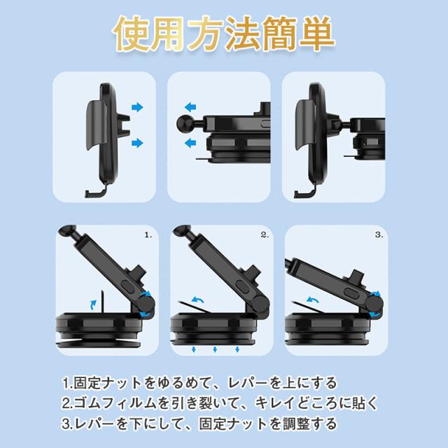 スマホホルダー 車 車載ホルダー 自動開閉 ワイヤレス充電 センサー スタンド ワイヤレス 充電器 吸盤 iPhone Andoid 片手操作