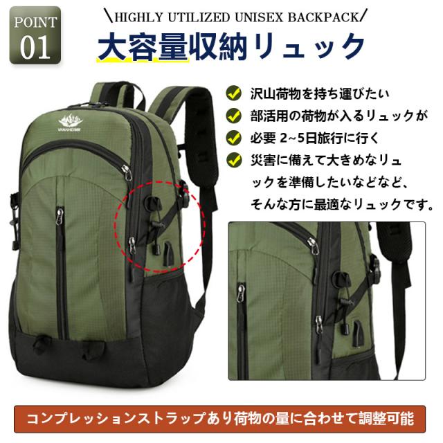 リュック リュックサック USB充電ポート 通勤 通学 旅行 キャンプ 防災 アウトドア バッグ 撥水 大容量 カジュアル 登山 メンズ