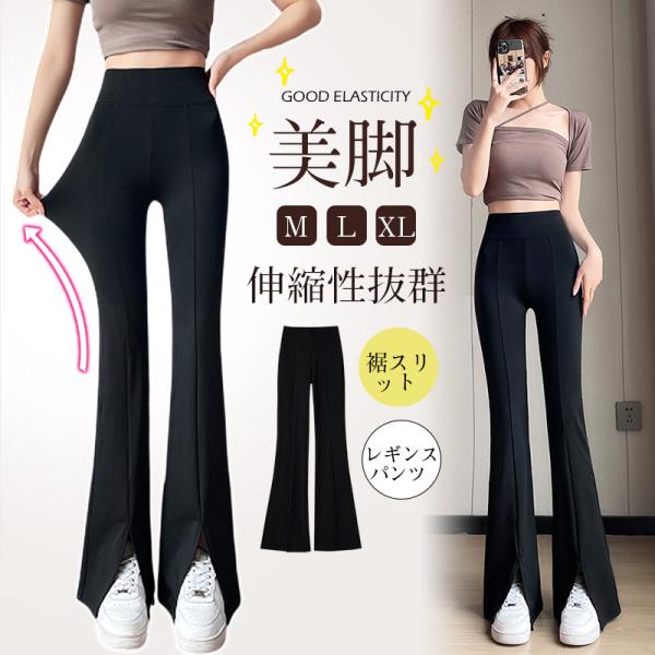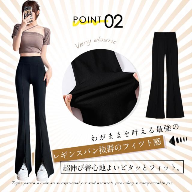 レギパン レギンスパンツ フレアパンツ 薄手 通気 伸縮性抜群 超伸び レギンス スリットパンツ センタースリット ストレッチパンツ 細身 通勤 通学
