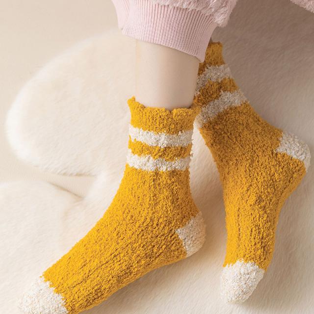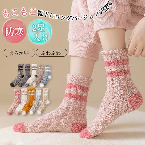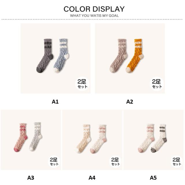 ソックス 靴下 2足セット ルームソックス 産後 保温 秋冬 おやすみ 寝る時 暖かい ふわふわ 裏起毛 秋冬 リラックス 厚手 ハイソックス
