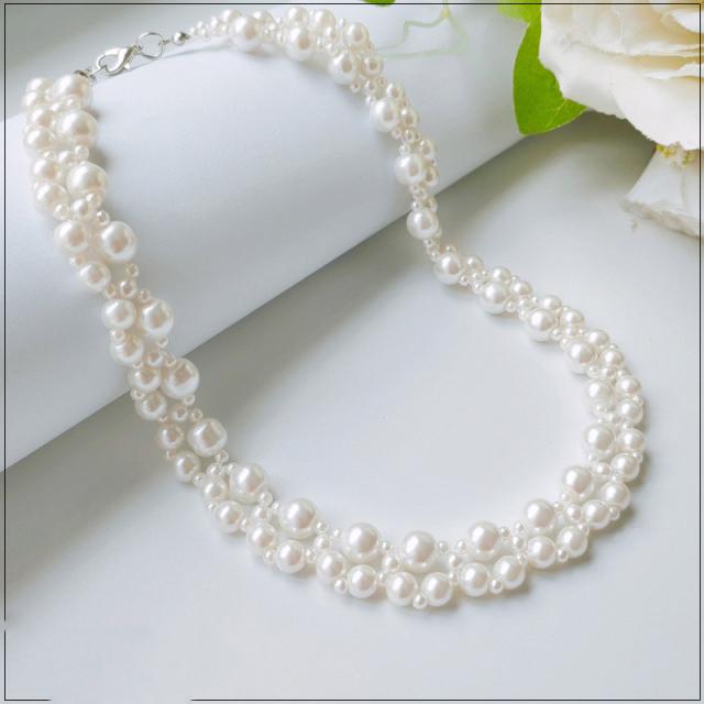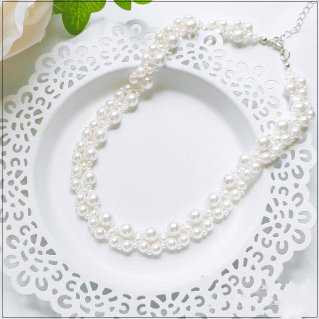 ネックレス パール 結婚式 パーティー チェーン 二連パール 大粒 同窓会 謝恩会 成人式 ウェディング キャバ ショート お呼ばれ 二次会 卒業式