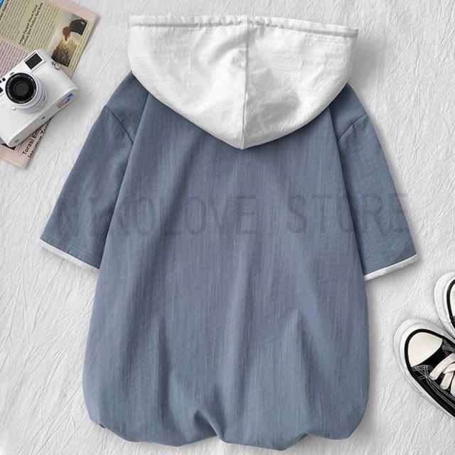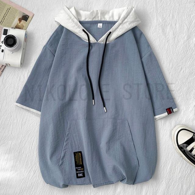 パーカー メンズ フード付き 半袖 5分半袖パーカー プルオーバ シンプル ゆったり カジュアル レイヤード かっこいい 男の子 春夏 通学 夏服 夏