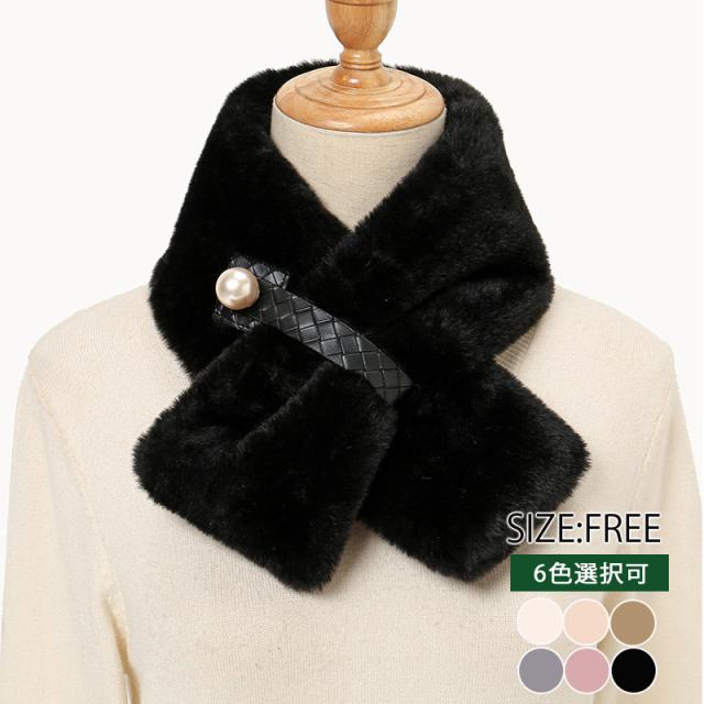 一部即納 赤字覚悟!マフラー レディース エコファーフェイクファー 無地 おしゃれ 防寒 ネックウォーマー 秋冬 小物 暖か ボリューム 厚手 真珠 送料無料