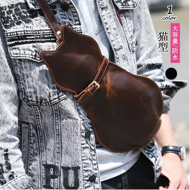 猫型ボディーバッグ ショルダーバッグ ベルトポーチ レディース 本革 牛革 バッグ 猫 ショルダー 小物入れ 携帯便利 スマホポーチ