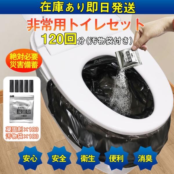 簡易トイレ 防災セット 非常用トイレセット 携帯トイレ アウトドア 凝固剤 120回分 防災グッズ 抗菌 消臭 災害用 防災 台風 登山 断水 渋滞