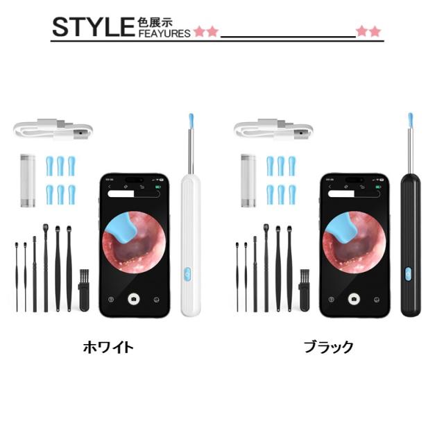 耳かき カメラ 800万画素 7点セット付き みみかき LEDライト 耳掃除 イヤースコープ IP67防水 3.5mm極細レンズ WIFI接続 温度制御