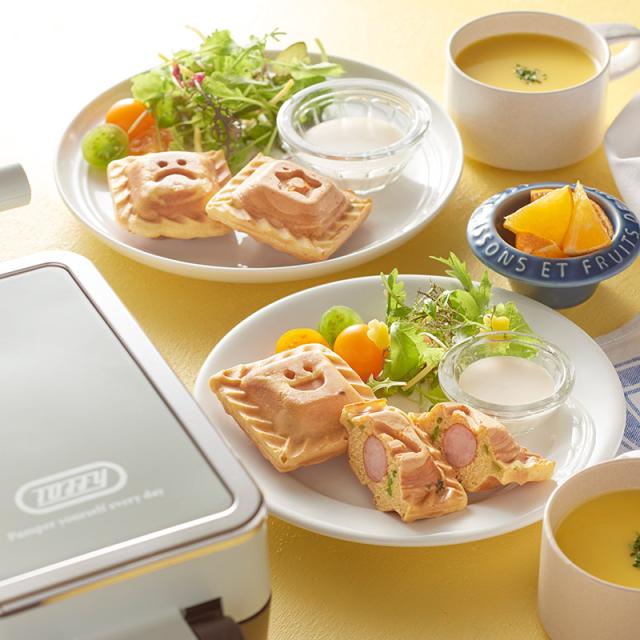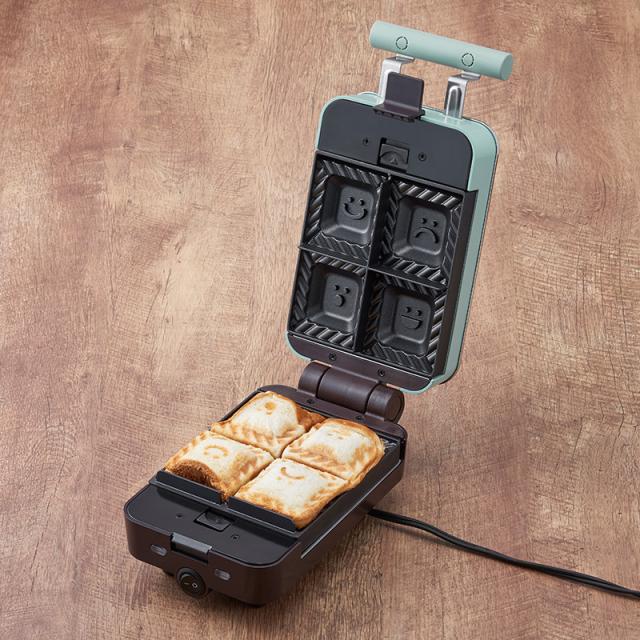 約5cm×5cmサイズのホットサンドが同時に4つ作れるホットサンドメーカー。お子さまが喜ぶ、かわいいお顔付き。ホームパーティーやお誕生日会などで活躍すること間違いなしです。