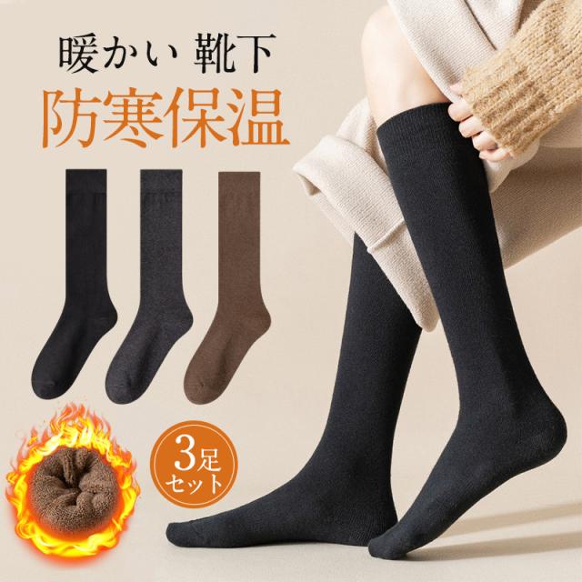 ハイソックス 靴下 レディース 3足セット あったか 裏起毛 厚手 冷え対策 暖かい 保温 防寒 着圧 吸湿 発熱