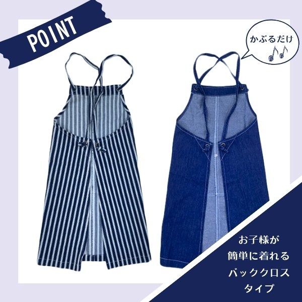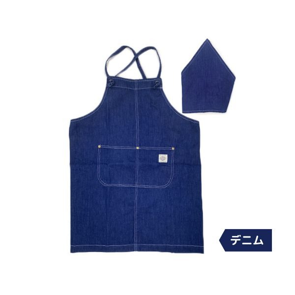 Ocean&Ground エプロンSET BLUE BLUE キッズ ジュニア 100〜160cm デニム エプロン 三角巾 2点セット クロス型 バッククロス キッズエプロン 子供 男の子 女の子 シンプル おしゃれ お手伝い 調理実習 オーシャンアンドグラウンド 1328002