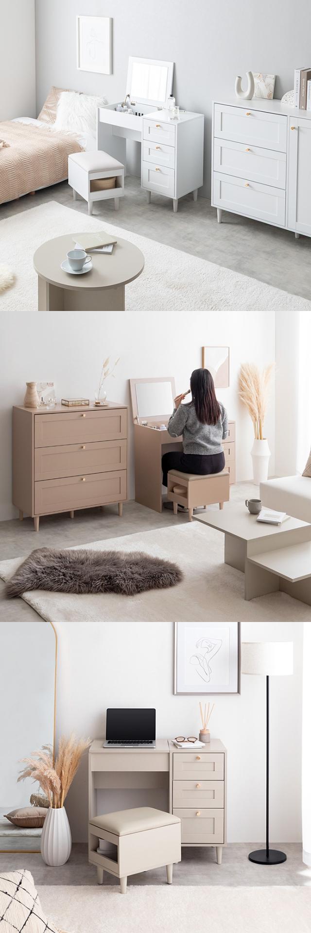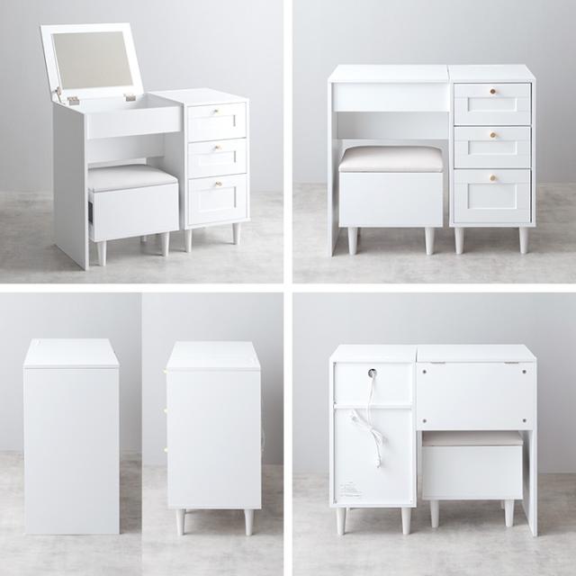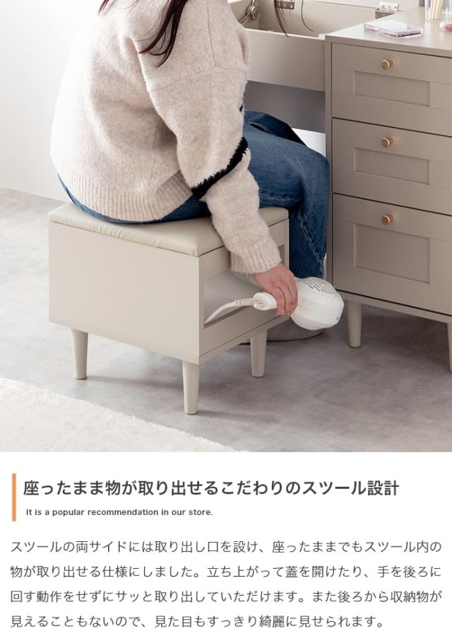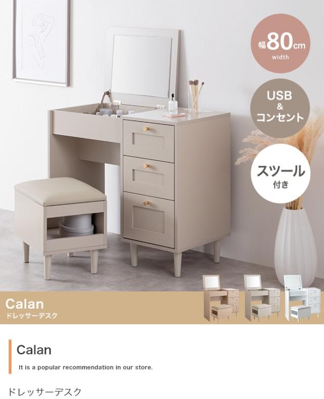 ドレッサー デスク 兼用 2点セット 幅80cm Calan 3色対応 リビングチェスト 北欧 スツール チェア 鏡台 おしゃれ ミラー 化粧台 椅子 ワークデスク 机 収納棚 コンセント付き キャビネット 木製 シンプル