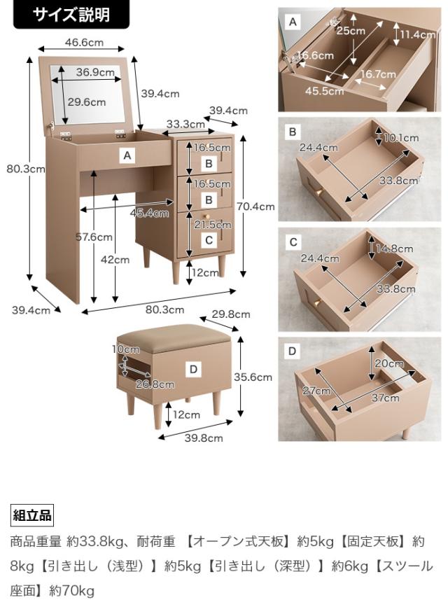 ドレッサー:約 W80.3 x D39.4 x H70.4cm