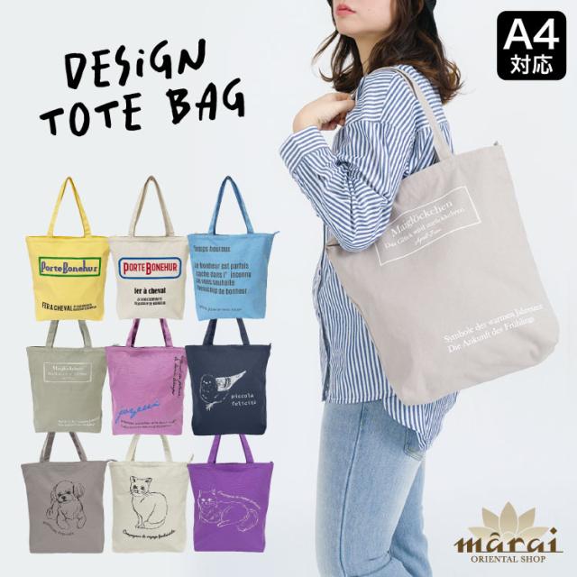 トートバッグ A4 大容量 バッグ メインでもサブにも使える。デザイントートバッグ rbg70182 ファスナー付き ポケット付き レディース メンズ 男女兼用 シマエナガ ネコ イヌ ロゴ デザイン 10代 20代 30代 40代 50代 60代