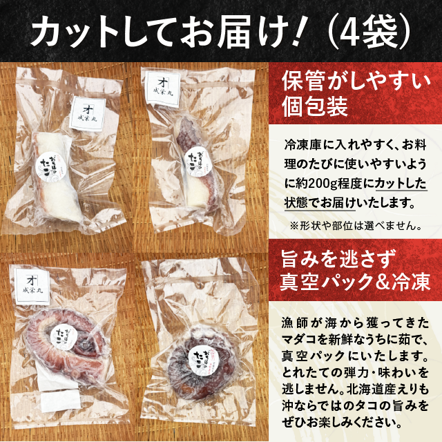 ■内容量:北海道(えりも)産 真ダコ 約800g (約200g×4個 個包装)