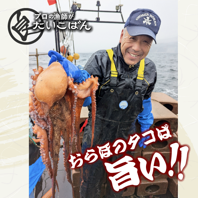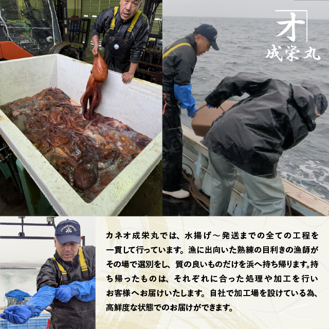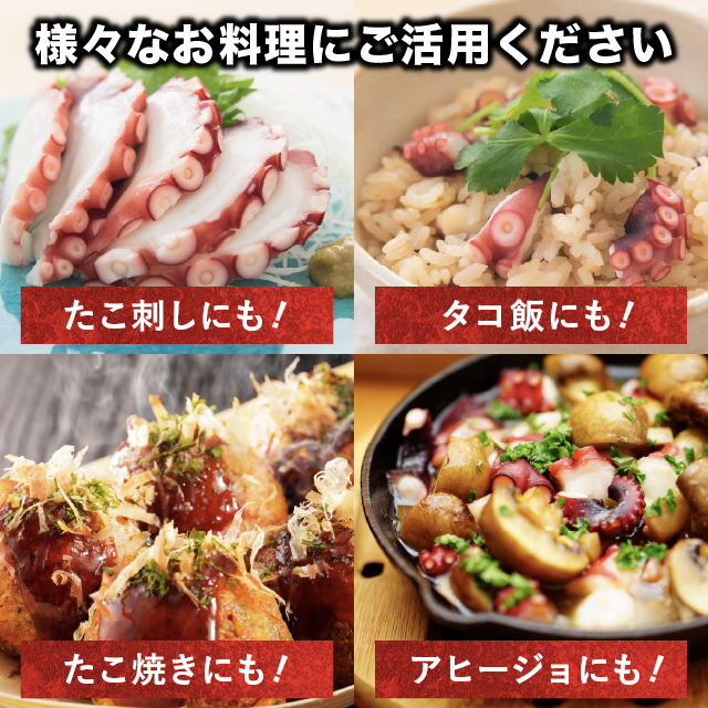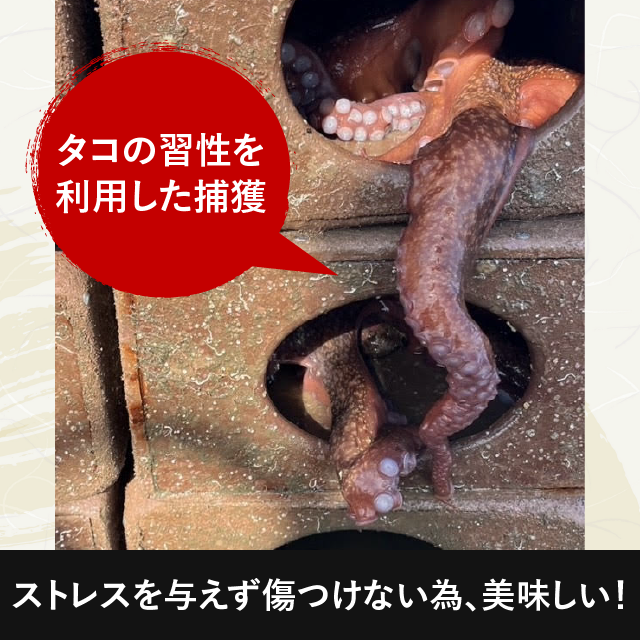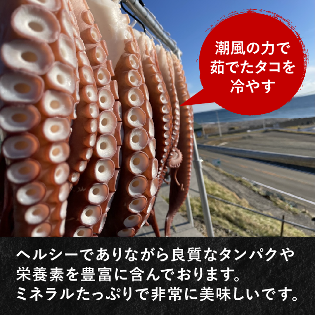 漁師が水揚げしたタコを浜茹でし、高鮮度の状態で包装致します。