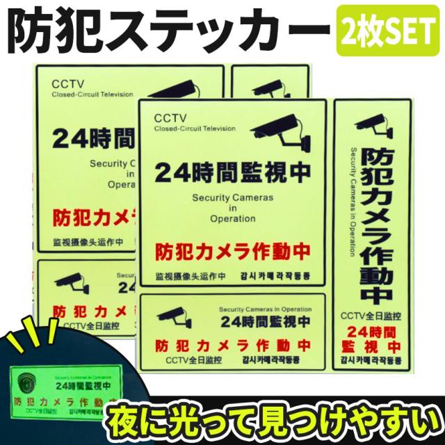 防犯ステッカー 光る 蓄光 2枚セット 防犯 ステッカー シール 防犯グッズ 防犯カメラ ドア 壁 窓 ガラス 貼り付け 監視 防犯シール 防止 侵入 フィルム シート お店 屋外 見守り 対策 空き巣 万引き 泥棒 マンション セキュリティ 防水 耐光 目立つ 発光 ダミー 闇バイト 犯罪