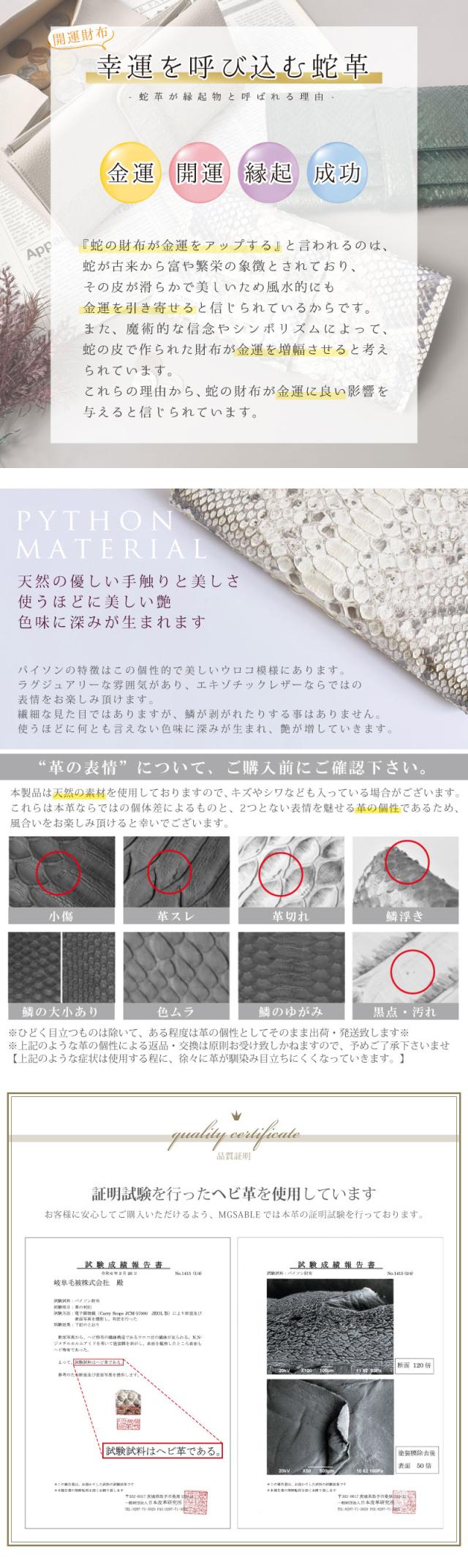 MGsableオリジナル パイソン本革 スキミング防止付き ギャルソン長財布