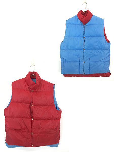 古着 80s USA製 Mountain Trails 赤×水色 軽量 ボリューム ダウン ベスト L 古着