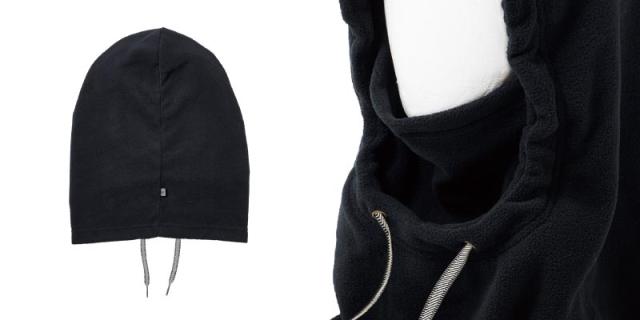 フリース素材フードウォーマーは、顔周りへの雪の侵入を防ぐドローコード付きで、吹雪のライディングには着用必須アイテム。