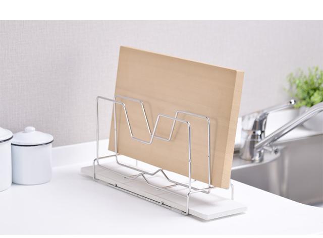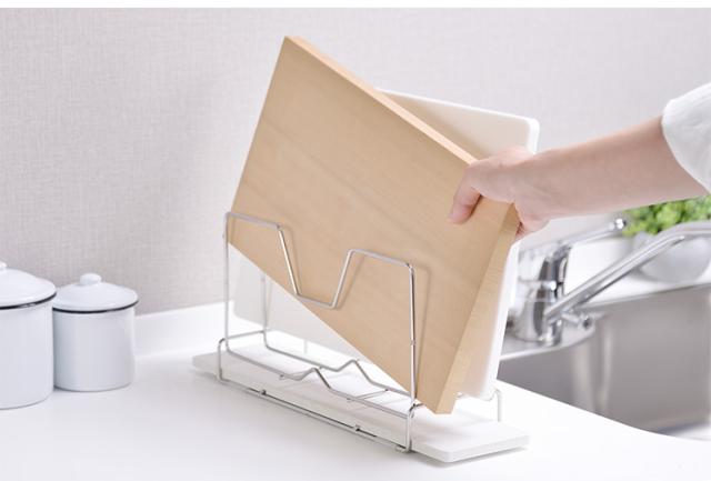 幅40cm、厚さ4cmまでのまな板を2枚立てかけられます。