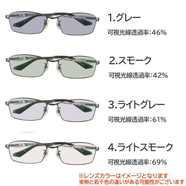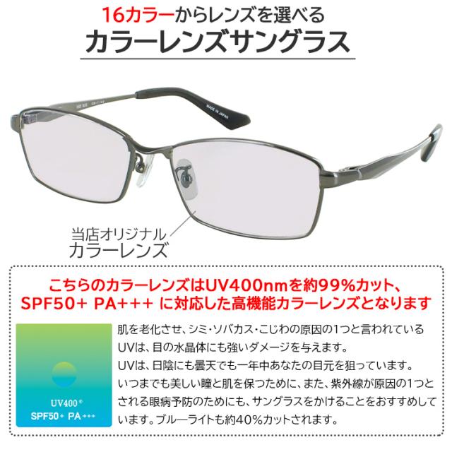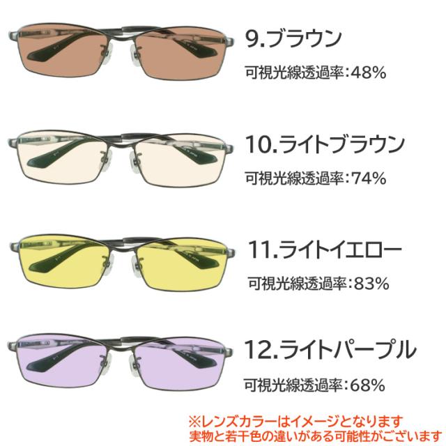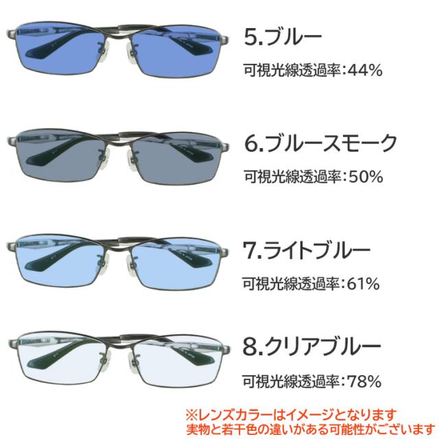 | 商品詳細 SAXE BLUE ザックスブルー 日本製 メガネ フレームに、 当店オリジナルカラーレンズを組み合わせた、サングラスです。 チタン製の眼鏡フレームで、約16gと軽量 made in Japan 日本製 シャープでスタイリッシュなデザインが魅力の「ザックスブルー」。 テンプル部分にβチタンバネを施し、掛け心地にも考慮したモデルは、クールな大人カッコよさを演出します。 こちらのカラーレンズはUV400nmを約99%カット、 SPF50+ PA+++に対応した高性能カラーレンズとなります ブルーライトも約40%カット レンズカラーは16色の中からお選びいただけます。 <レンズカラー:可視光線透過率 > 1.グレー:46% 2.スモーク:42% 3.ライトグレー:61% 4.ライトスモーク:69% 5.ブルー:44% 6.ブルースモーク:50% 7.ライトブルー:61% 8.クリアブルー:78% 9.ブラウン:48% 10.ライトブラウン:74% 11.ライトイエロー:83% 12.ライトパープル:68% 13.グリーン:53% 14.ライトグリーン:71% 15.ライトピンク:76% 16.ライトオレンジ:75% | |