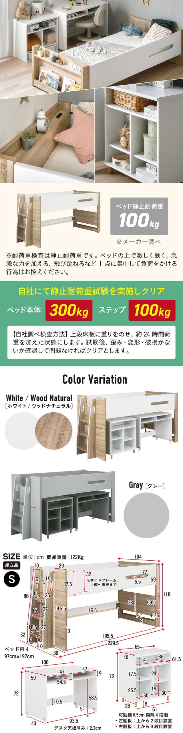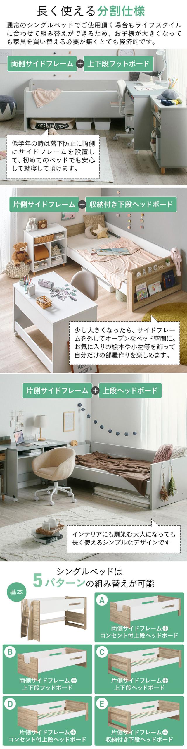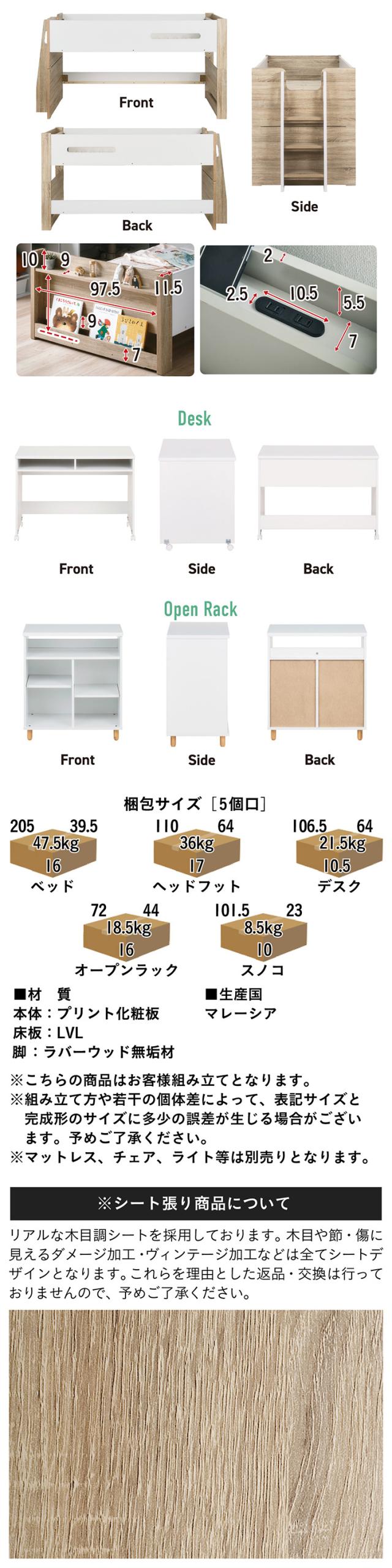 システムベッド ロフトベッド シングルベッド 子供 ロータイプ 階段 木製 キャスター付き 学習机 オープンラック おしゃれ シンプル ナチュラル コンパクト 北欧 組み替え可能 Sesame(セサミ) 3点セット 2色対応