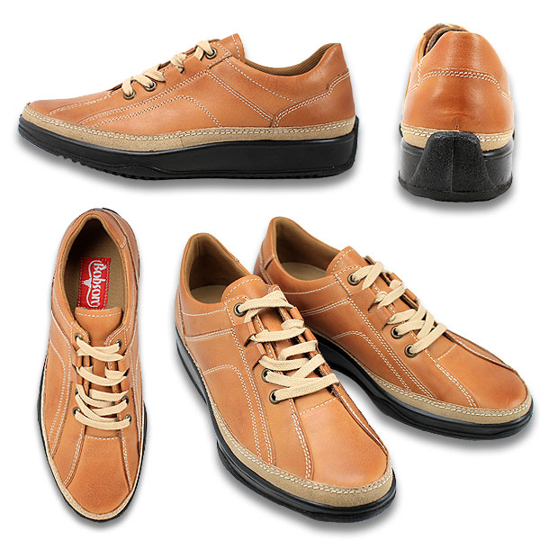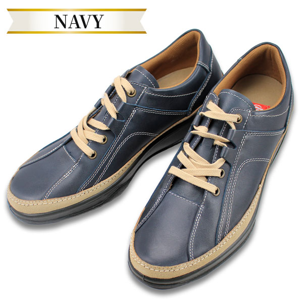 3つのはと目と2つのレザースルーで凝ったデザインの紐タイプです。着地時の衝撃を吸収しながらそのエネルギーを反発力に変えるスポンジをかかとに搭載しています。日本製です。