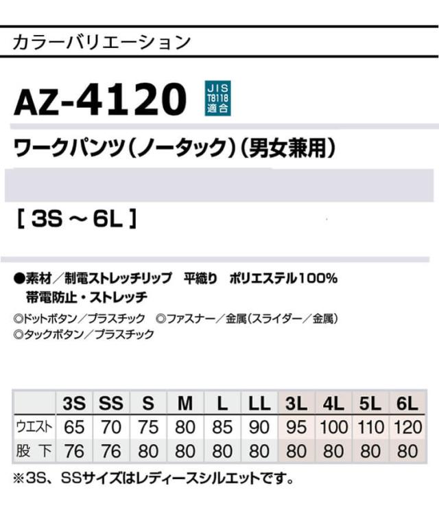 作業服 AITOZ アイトス ワークパンツ AZ-4120 作業着 秋冬 ノータック 帯電防止 サイズ3S〜LL