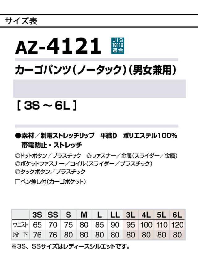 作業服 AITOZ アイトス カーゴパンツ AZ-4121 作業着 秋冬 ノータック 帯電防止 サイズ6L
