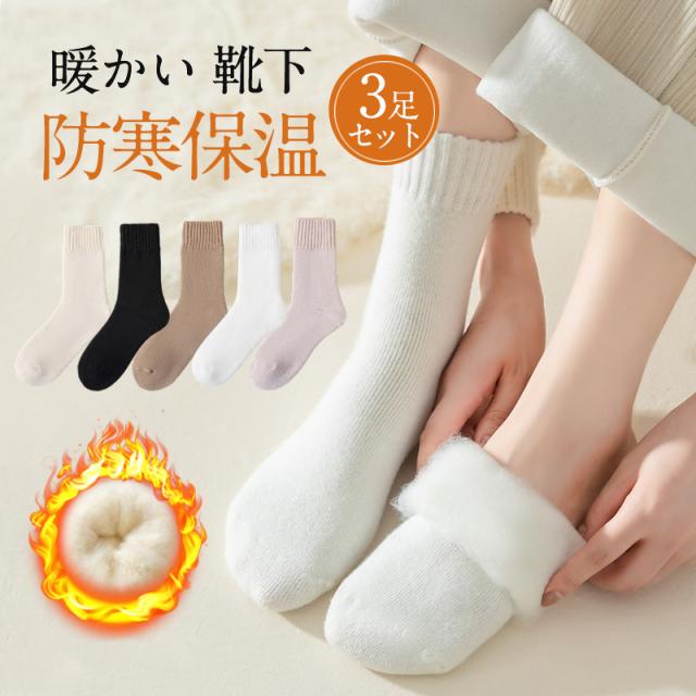 靴下 レディース ソックス 3足セット あったか靴下 裏起毛 厚手 冷え対策 暖かい 保温 防寒 吸湿 発熱 秋冬