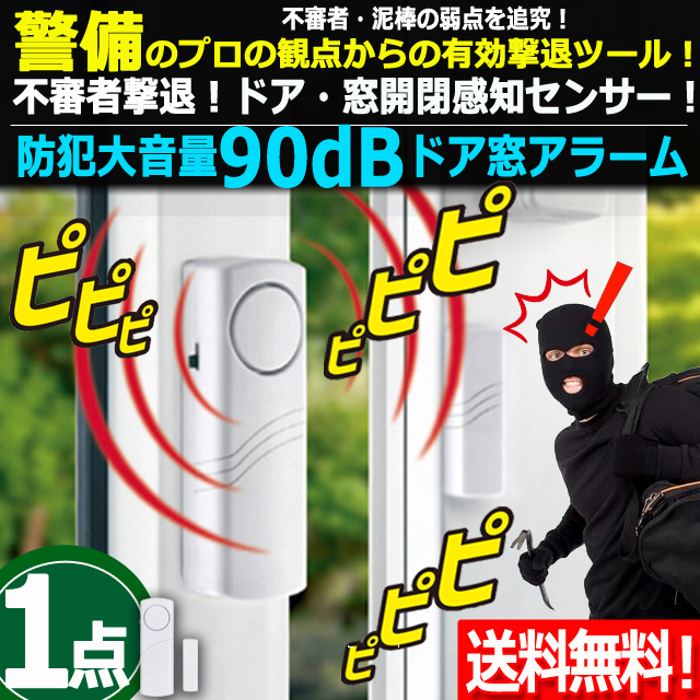 1点 強盗 ドア 窓 不審者 警報 風呂場 空き巣 留守 一人暮らし 泥棒 ドアや窓の開閉を感知し警報!(防犯大音量90dBドア窓アラーム 1点)