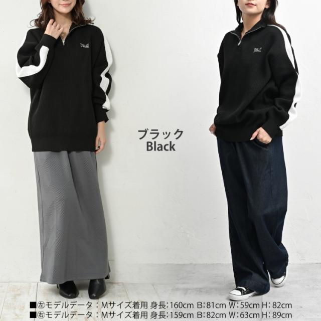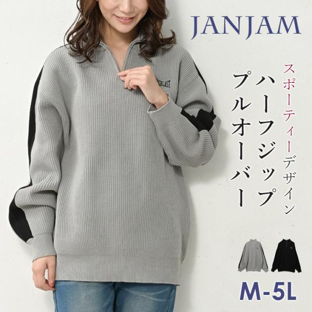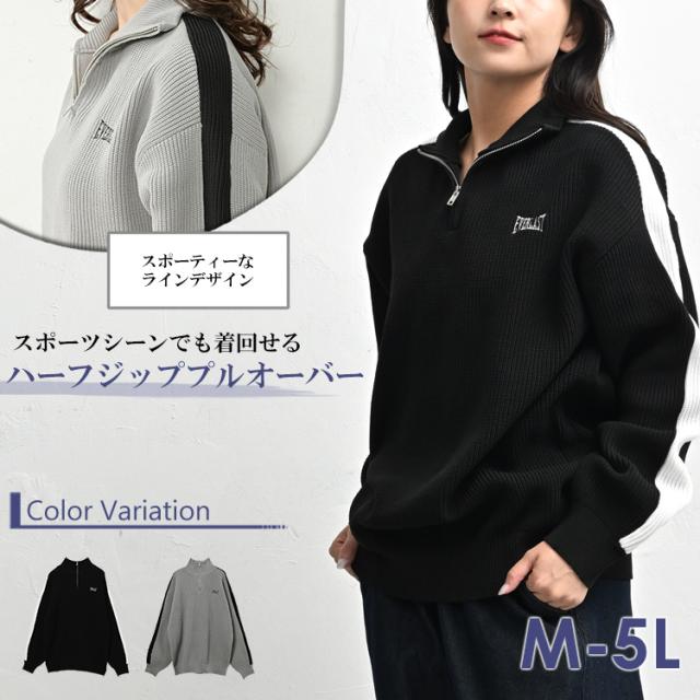 送料無料※沖縄/北海道対象外 大きいサイズ レディース ニットプルオーバー 長袖 ハーフジップ 袖ライン リブニット トップス M/LL/3L/4L/5L ゆったりサイズ ぽっちゃり女子 プラスサイズ