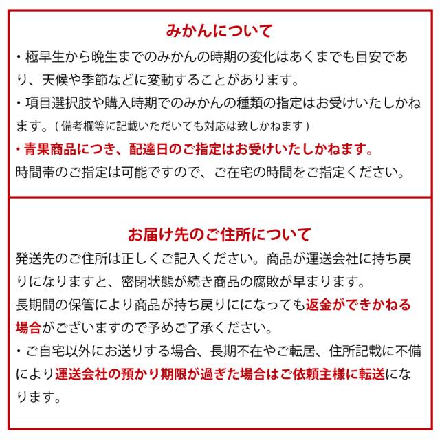 発送時期とみかんの種類の変化は目安です。みかんの種類のご指定はできませんので予めご了承ください。