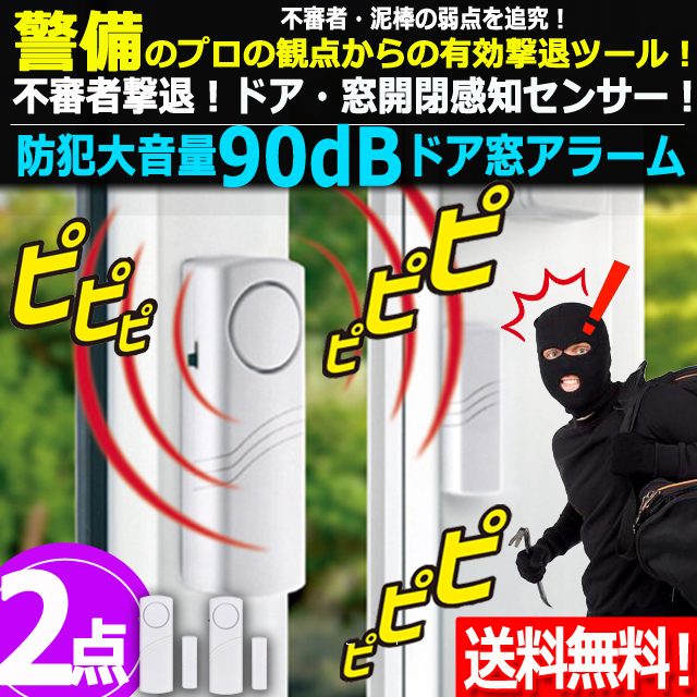 2点 強盗 ドア 窓 不審者 警報 風呂場 空き巣 留守 一人暮らし 泥棒 ドアや窓の開閉を感知し警報!(防犯大音量90dBドア窓アラーム 2点)