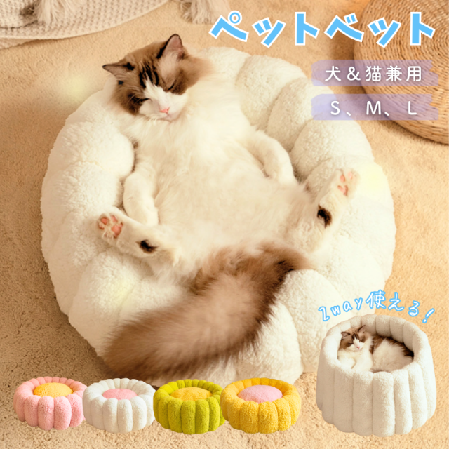 【最大3P】Sサイズ(3.5kg以内) サイズ ペットベッド クッション犬 猫 犬用ベッド 猫用ベッド 2WAY使える もこもこ ふかふか 秋 冬 通年 オールシーズン 暖かい あったか 寒さ対策 滑り止め付き 噛んでも破れない 洗える 丸洗い ペットグッズ ペットマット