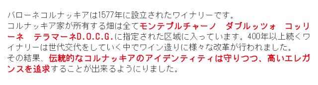 商品名 モンテプルチアーノ ダブルッツォ バローネ コルナッキア