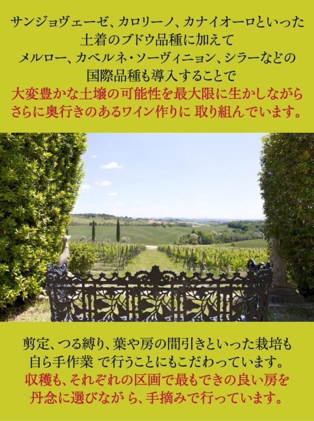 葡萄品種:サンジョヴェーゼ80%、コロリーノ15%、カナイオーロ5%