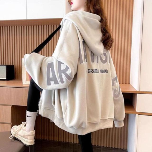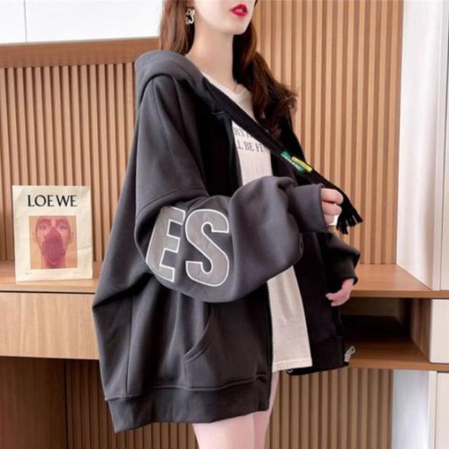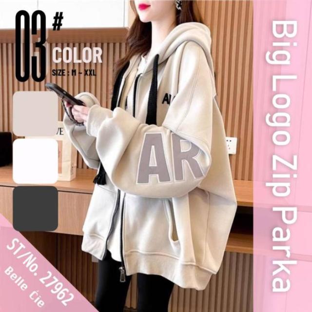 ジップ パーカー レディース 羽織り ジャケット ジップアップ ブルゾン スウェット アウター 秋冬 フード 韓国ファッション 楽 ロゴ フード付き