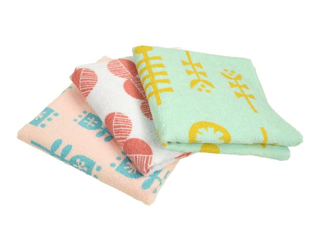 ◆商品名:Kosugizen ミニバスタオル まいにちのプリントタオル 北欧調 3色(3柄)各1枚入 50×100? あると便利なコンパクトサイズ 乾きやすい薄手タ