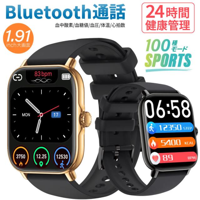 スマートウォッチ 通話機能搭載 腕時計 1.91インチ大画面 レディース メンズ 100+運動モード メール/着信/LINE通知 長持ちバッテリー 血糖値 血圧 心拍 血中酸素 睡眠検測 本体 アンドロイド android iphone 日本語対応 p72