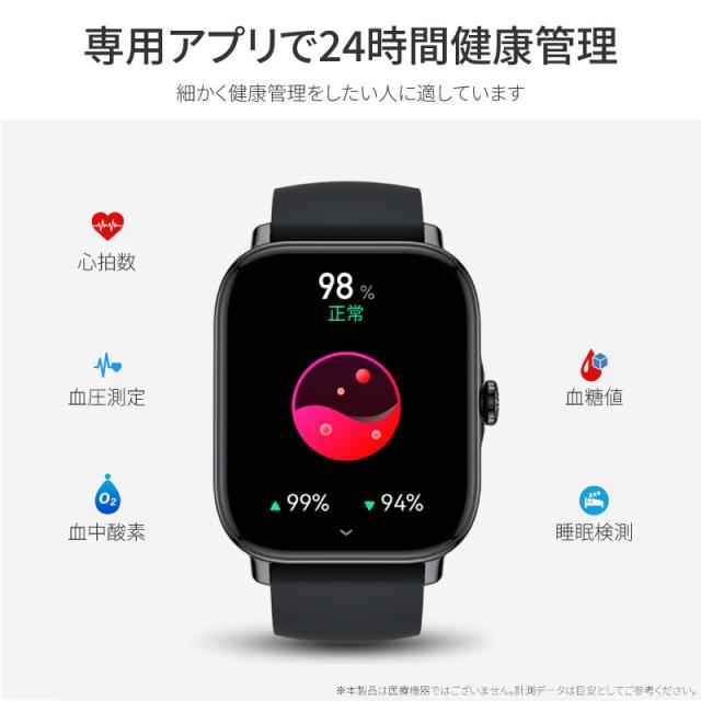 血中酸素 / 血糖値測定 / 血圧計測 / 心拍数など