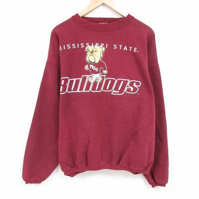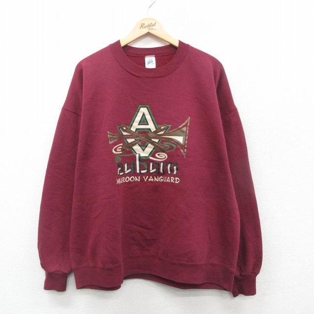 古着 長袖 スウェット メンズ 90年代 90s ブルドッグ 大きいサイズ クルーネック USA製 エンジ XLサイズ 中古 スエット トレー 中古 古着