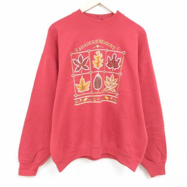 【商品名】 XL★古着 長袖 スウェット メンズ 90年代 90s ブルドッグ 大きいサイズ クルーネック USA製 エンジ