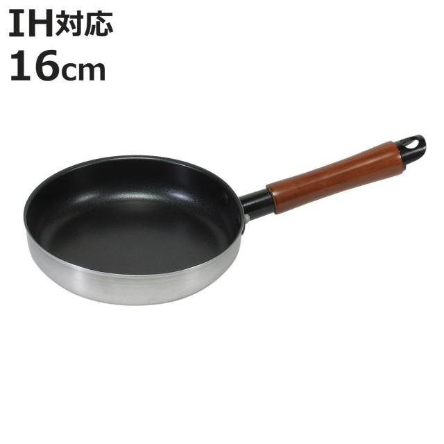 フライパン 16cm IH対応 ファストクック 2層鋼ダイヤモンドコート ( ガス火対応 オール熱源対応 炒め鍋 ふっ素加工 軽い 16センチ 浅型 いため鍋 フッ素加工 ステンレス アルミ 2層構造 木柄 軽量 フライパン ih対応)